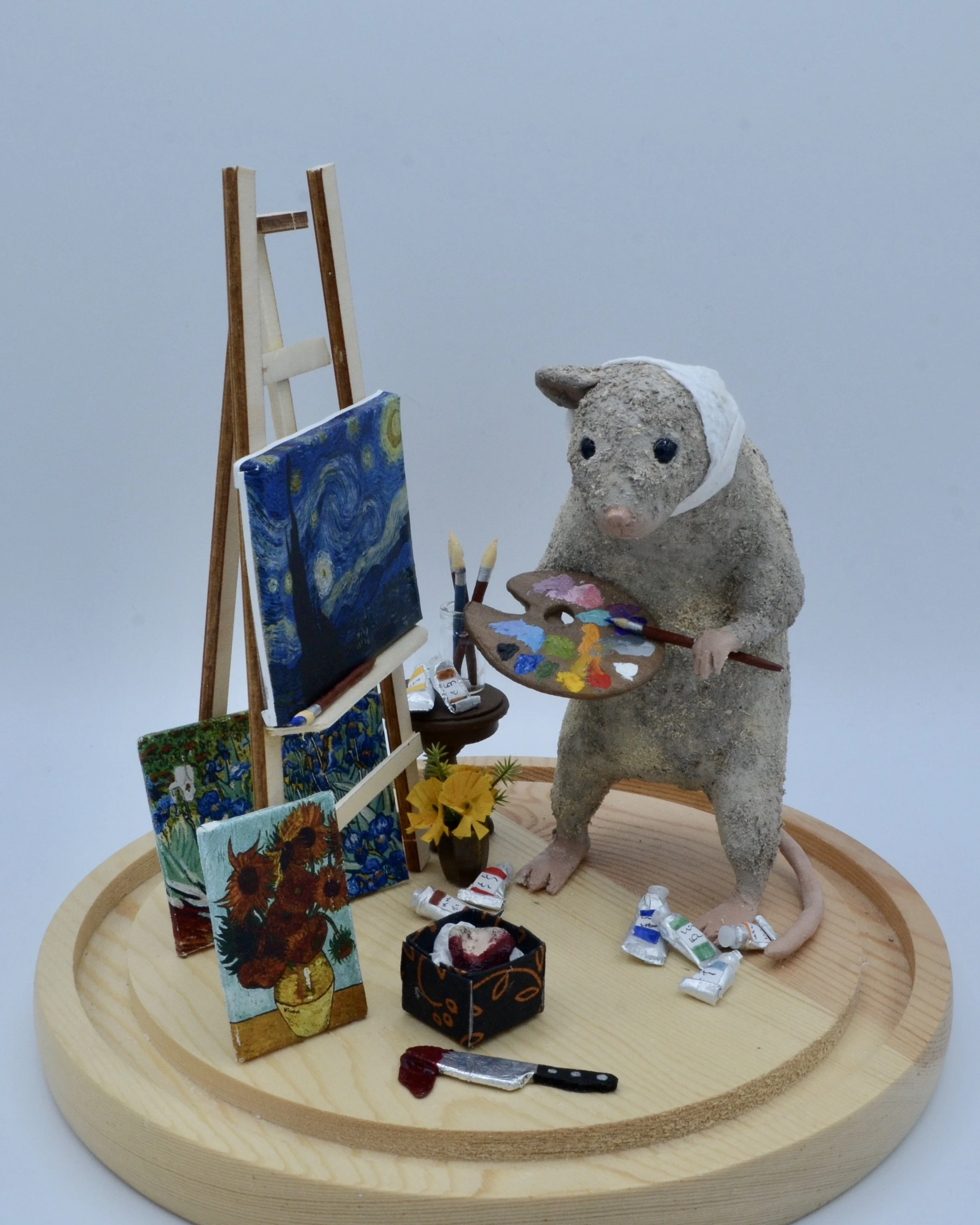 This set is part of my faux taxidermy series, scaled to pet rat size (about 1/9) - Van Gogh’s height was 67” & pet rat on average 8-11”